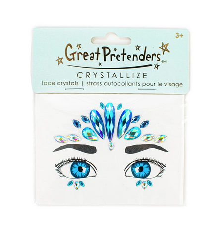 Mermaid Face Crystals are the perfect accessory for any aspiring mermaid! This set of vibrant blue face crystalsare perfect for your next party, but they also make great party favors for birthday parties. This set comes with 3 stickers; one large piece for the forehead, and 2 for under the eyes.