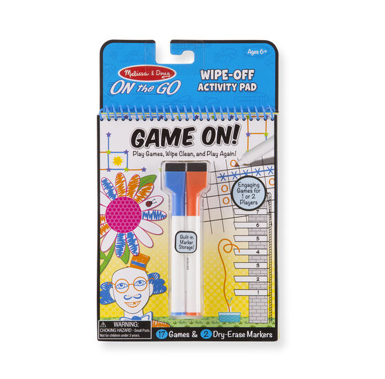 Take fun on the go with this "re-markable" take-anywhere book of dry-erase marker games! Choose from 17 different word, number and picture games for one or two players, including classics like hangman and I-spy, as well as games that are sure to become new favorite challenges. Two included dry-erase markers with built-in eraser caps store conveniently in the cover of the spiral-bound book, making it a perfect travel activity for kids six and older. It's easy to write on, erase, then play again!