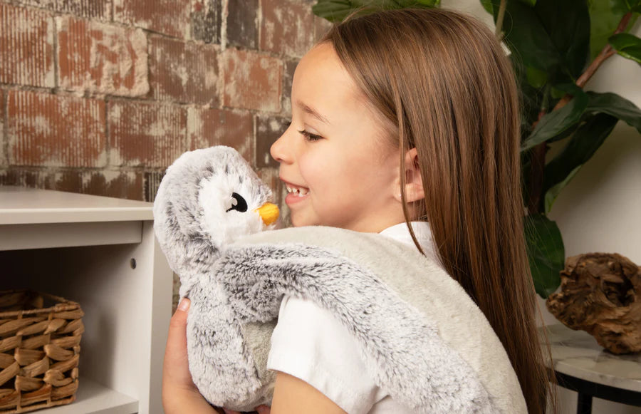 Unique wraparound arms/wings that act as a comforting weighted neck wrap. Their cozy hugs are unmatched!