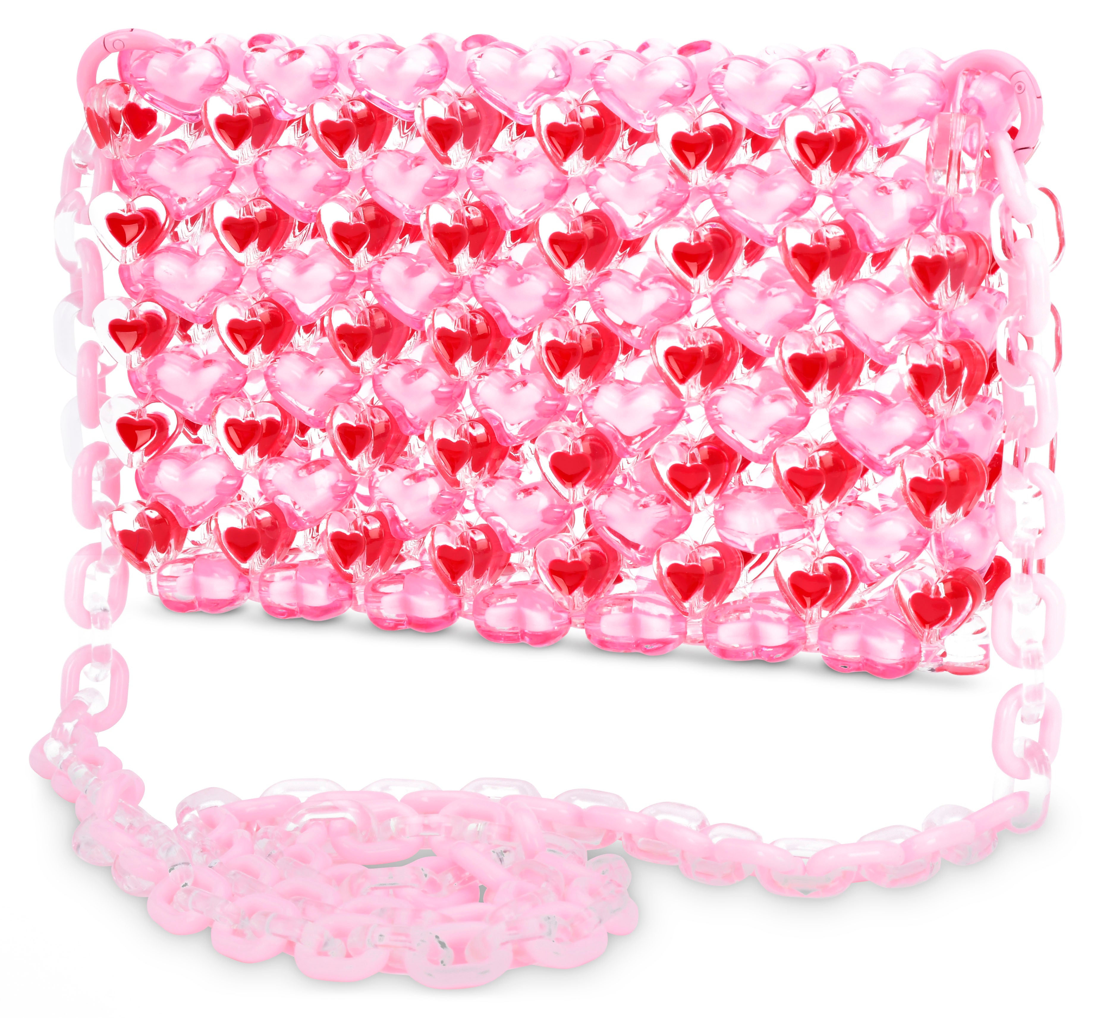 This playful Pink Hearts Beaded Crossbody Bag is perfect for Valentine's Day or any day you want to add some sweetness to your outfit. The pink hearts and beaded detailing add a unique touch, while the removable strap offers versatility. Show your love for fashion with this quirky bag!