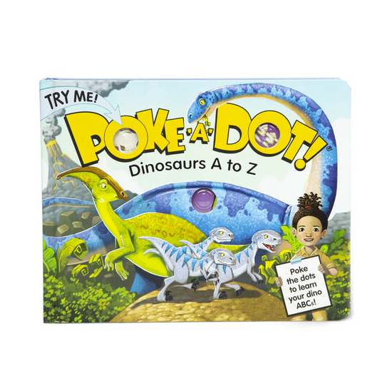 Get ready for some DINO-mite fun! Poke the irresistible click-to-count buttons to hear satisfying "clicks" and "pops" as you learn about dinosaurs from A to Z! This sturdy 20-page interactive board book invites kids to pop along as they discover the amazing world of dinosaurs and learn fun facts along the way. Poke-a-Dot® books help encourage language development, counting, and fine motor skills. Patented Pop-a-Tronic technology lets kids discover different popping sounds by poking the dots from the front or the back, with pages raised or flat!