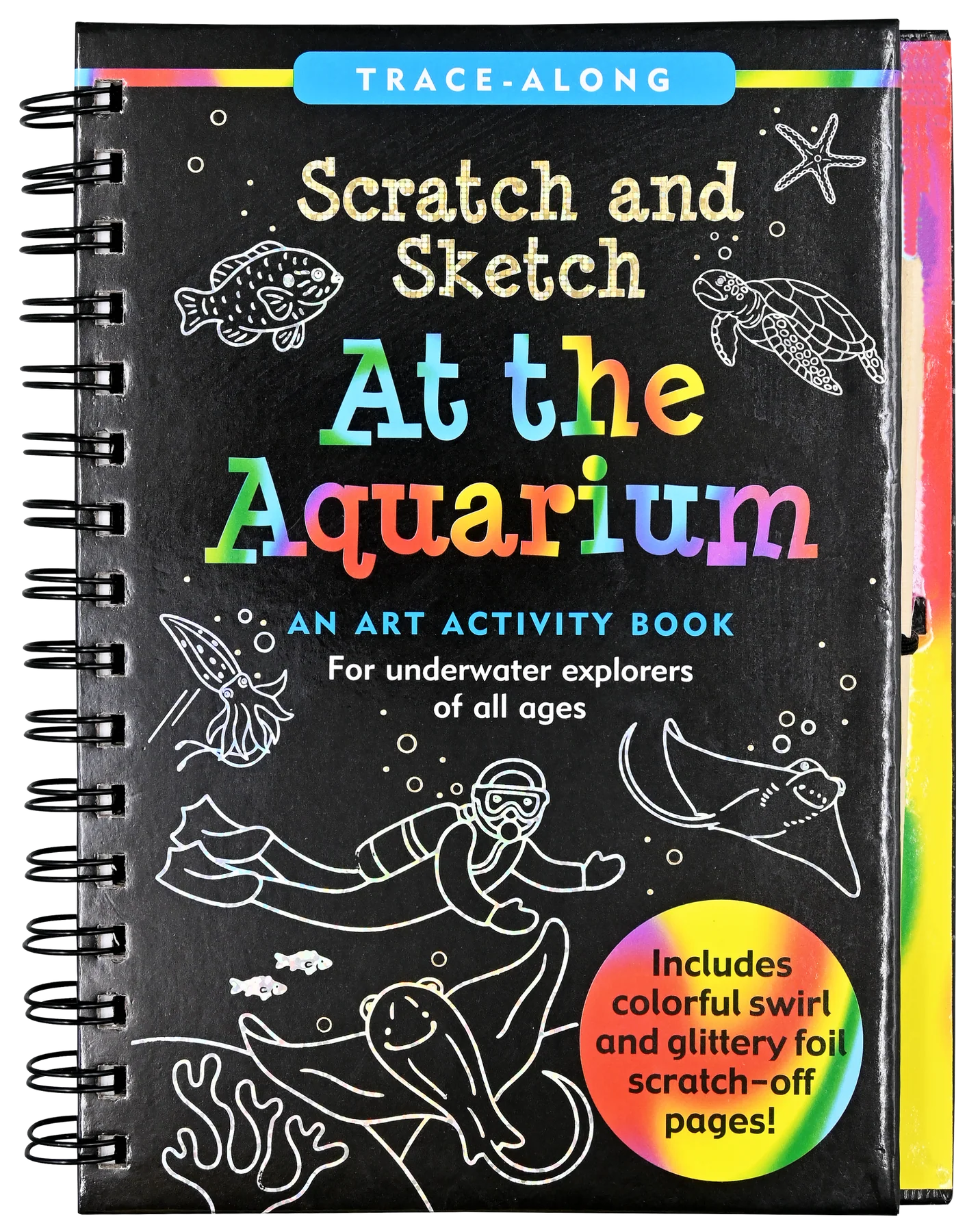 - Art activity book contains 20 black-coated scratch-off pages, 20 illustrated pages with informative text, and 20 pages for independent drawing.