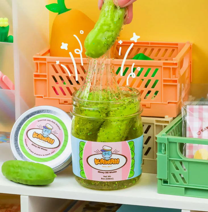 This Slime's a big dill! Who would have thought, a pickle Slime would be what you needed in life but we promise you, you do! We took our stretchy clear Slime base and added some shimmery glitter and scented it just like a sour, salty dill pickle! Just be warned, playing with this Slime may make you grab a jar of pickles from your fridge!