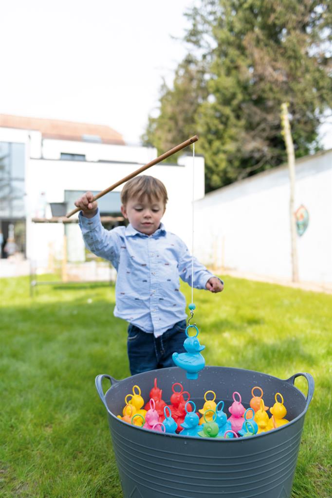 Teach children to recognise colours by getting them to fish for a certain colour. You can use a waterproof pen to write points on the bottom of the ducks to complete the game.