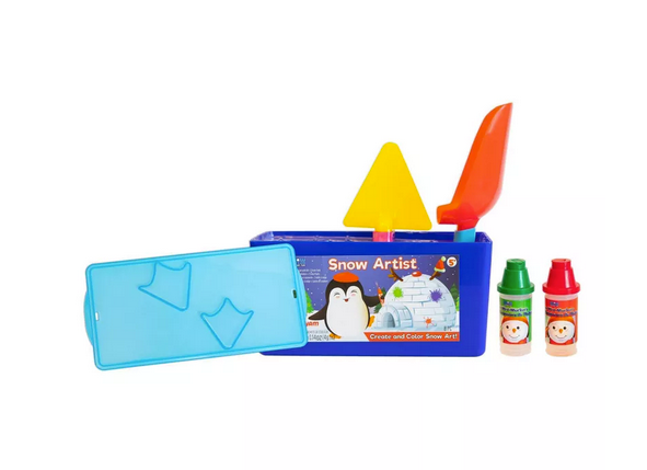 The snow artist bucket is perfect for the budding winter snow artist child. This set has all the tools to make cool snow creations in snow from shaping to forming snow designs, and then colouring the snow. You can use your bucket to create snow bricks by stuffing snow inside and then relasing the snow from the brick shaped bucket. Use your snow scooper and trowel to help create snow designs. There is a snow stamper that will create snow penguin or bird feet imprints in the snow. Use the art bucket to carry your snow art or after use store all your artist tools in the bucket. The snow stamper fits as a lid on the bucket.