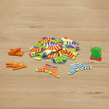 Snap up the pairs with monster speed! In this game of monstrously quick movements, for once kids can make a complete mess with their socks! Upon "go", children simultaneously look for matching pairs of socks - the first player to match 5 pairs then grabs the sock monster to signal the round is over. This player earns a clothespins for winning the round. The first player to earn 3 clothespins wins! A great matching and memory game for the whole family to play together!