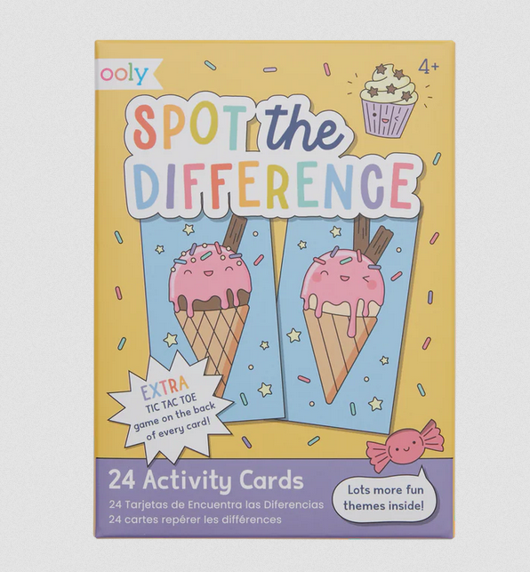 OOLY’s adorable Spot the Difference puzzle book for kids is a super fun way for kiddos to keep busy. It features 24 fun themes like cookies and milk, outer space, and ice cream cones—sure to challenge your child’s observation skills. Each spot the difference puzzle also includes a tic-tac-toe game on the back!