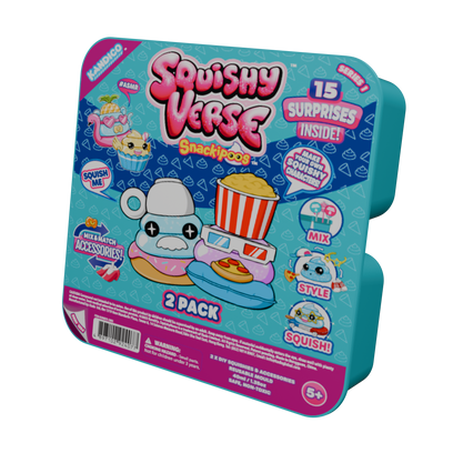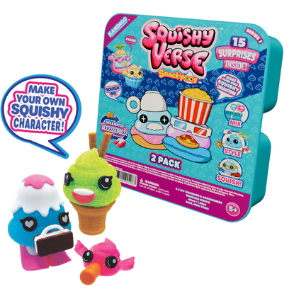 Unbox the ultimate squishy surprise with Squishyverse 2-Pack DIY Squishy Toys! Each pack includes 15+ exciting surprises to help you create two adorable Snackipoo characters.