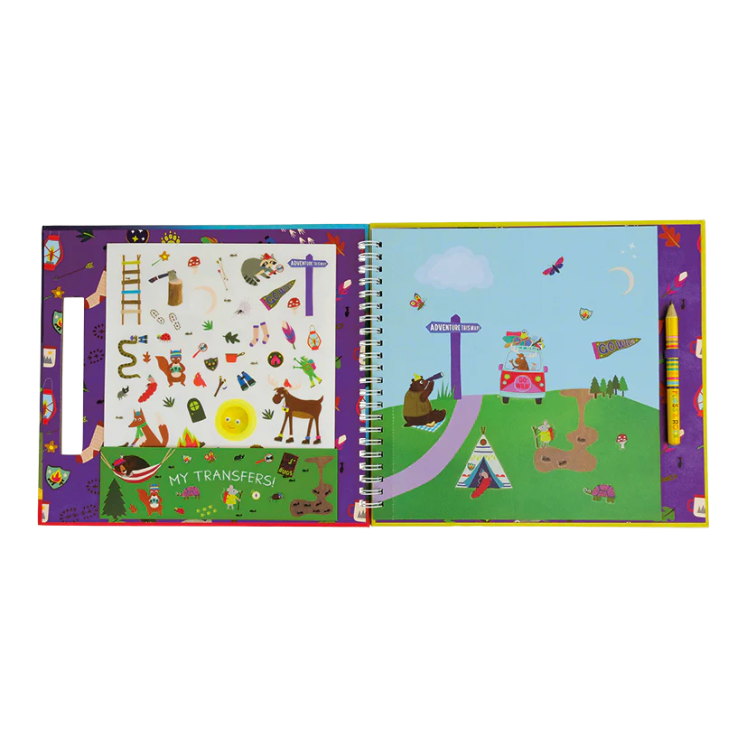 There's so much fun to be had with Transfers! This Adventure Transfer Fun comes with over 150 brilliant adventure themed transfers, 6 colorful scenes to place them onto, 6 plain pages for freestyle doodling and a pencil. Open the spiral bound book to find all your transfers neatly stored in the 'My Transfers' pocket, find your chosen illustration and flick through the pages to find the perfect scene to put them onto.