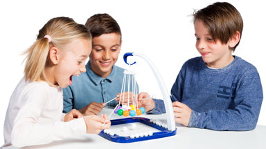Using precision and dexterity, players carefully take turns, placing beads, one by one, on top of the colored ball cluster. As weight increases, causing the cluster to slowly separate, it becomes more and more likely that the beads may fall through the cracks. Keep a steady hand, remain calm and carefully consider where to place your beads or else you’ll make everything…TUMBALL!