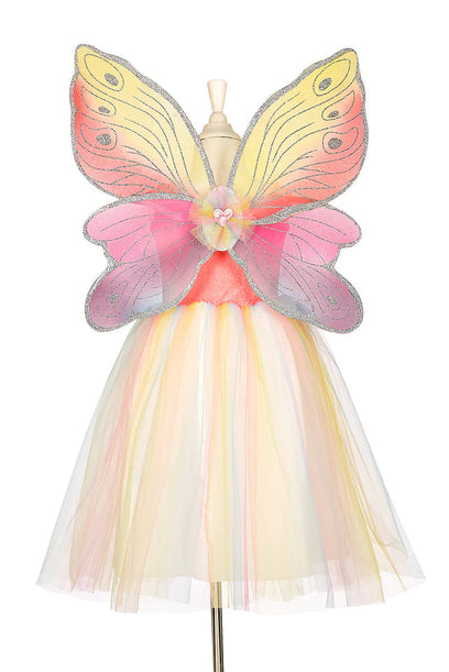 Attached wings flutter gently with every twirl, making it easy to imagine flying through a garden of flowers or casting kind-hearted spells. Whether it's for a birthday party, a dress-up day at home, or just a magical moment in the backyard, this dress transforms any ordinary day into something extraordinary.