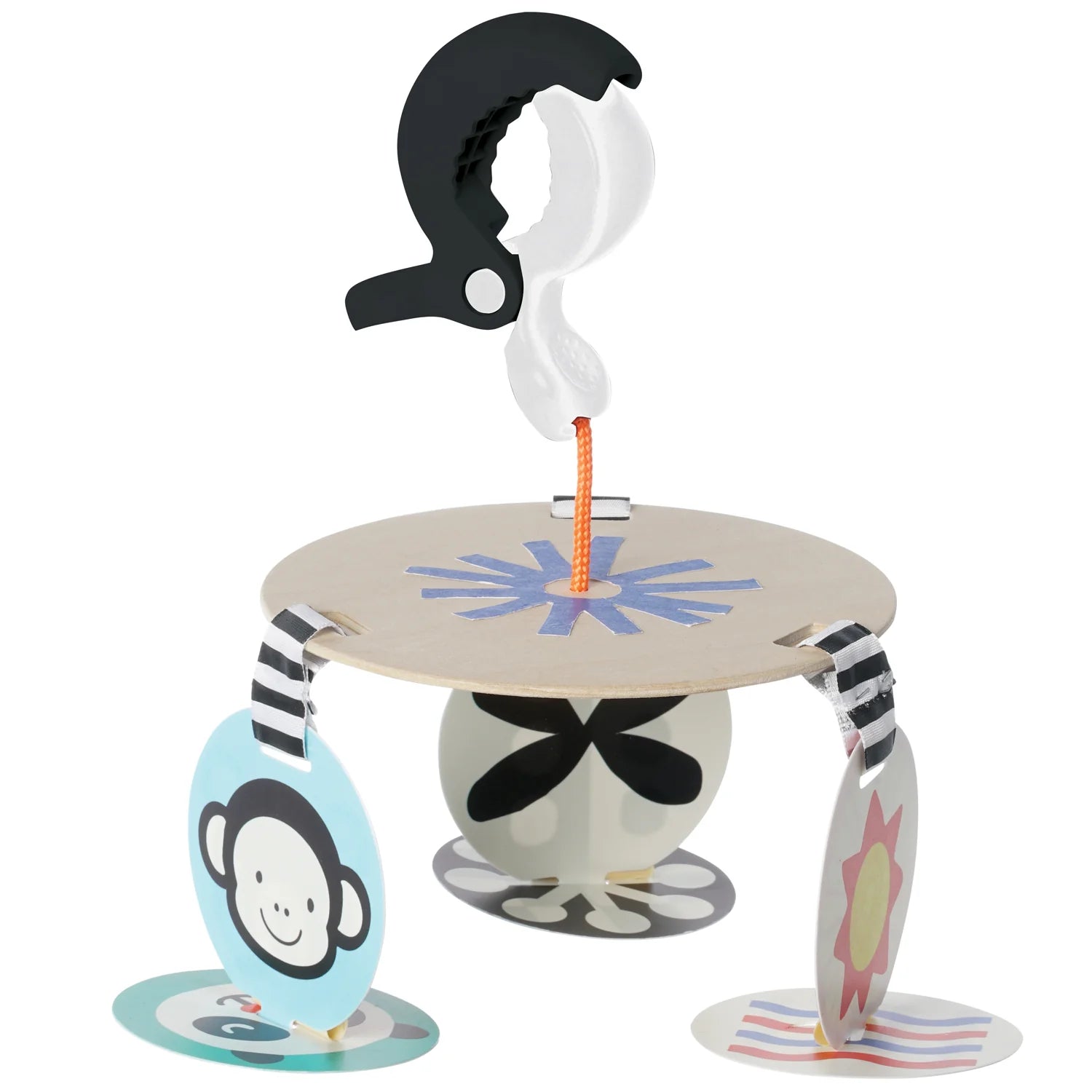 Clip-n-go fun for the stroller, carrier, or above the diaper changing station. High-contrast graphics captivate baby and support visual development!