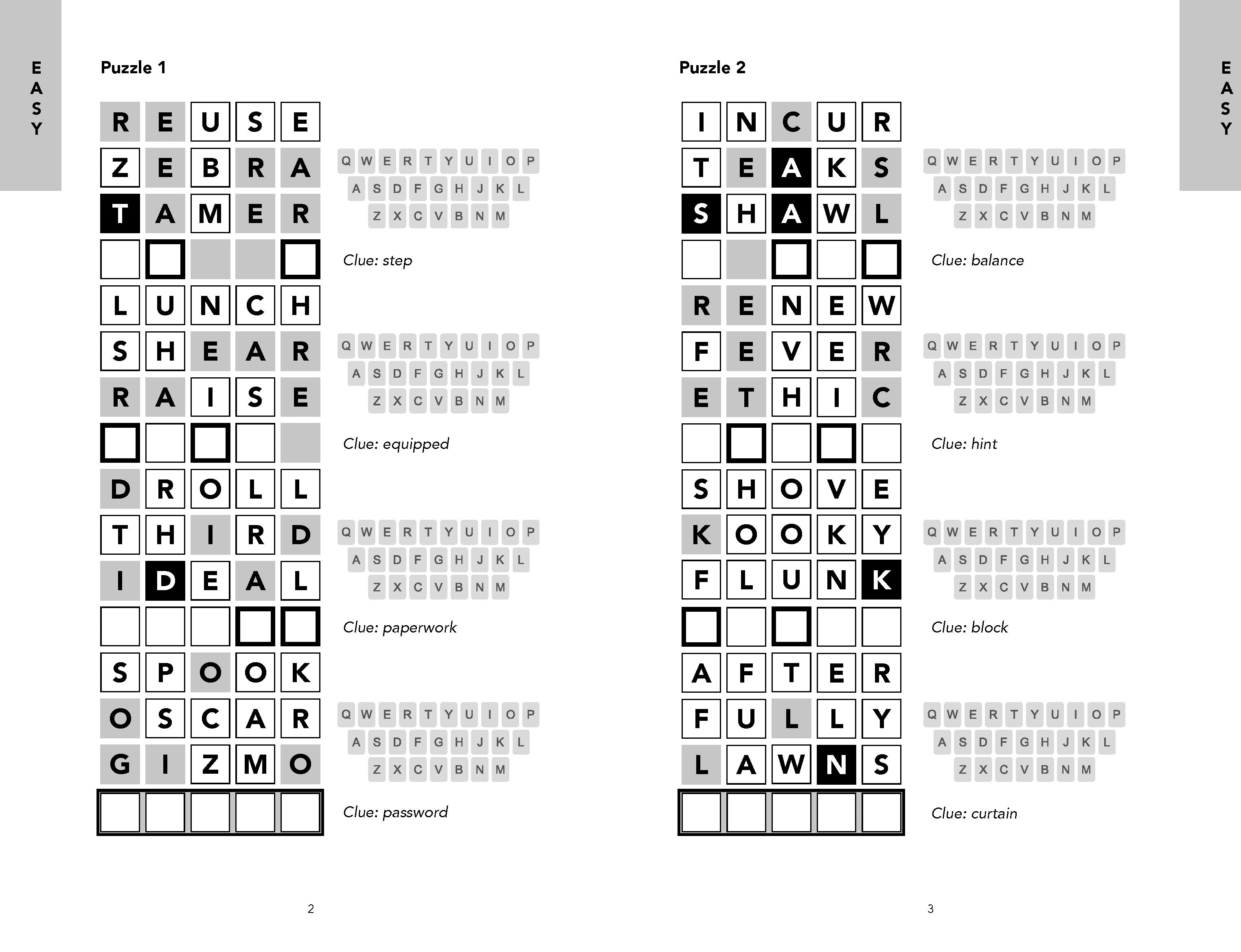 Master these challenging puzzles by guessing the correct word for each gap in the grid, deducing from previous words what letters go where. There’s only ever one correct solution to each puzzle, and a full set of answers can be found at the back of the book.